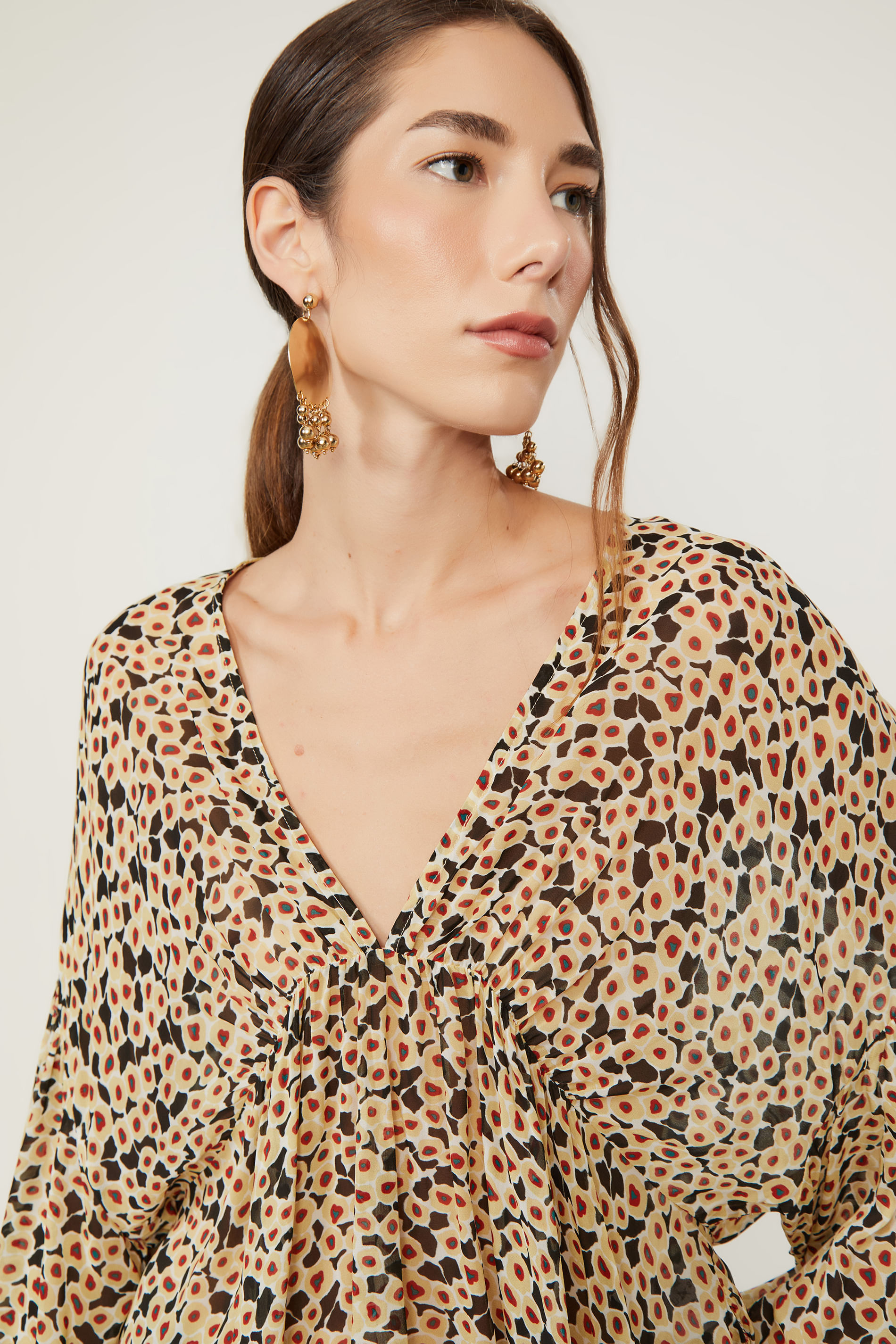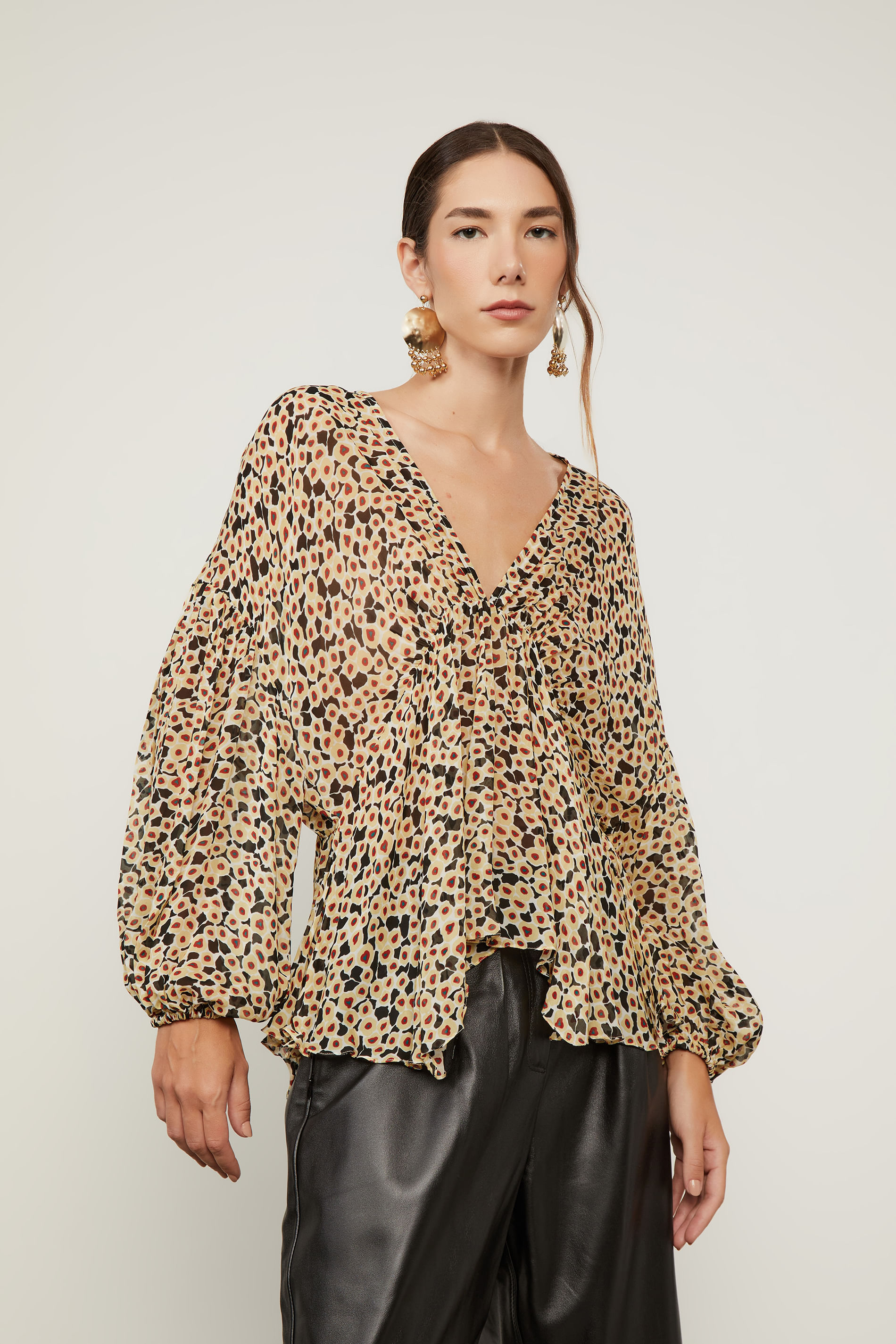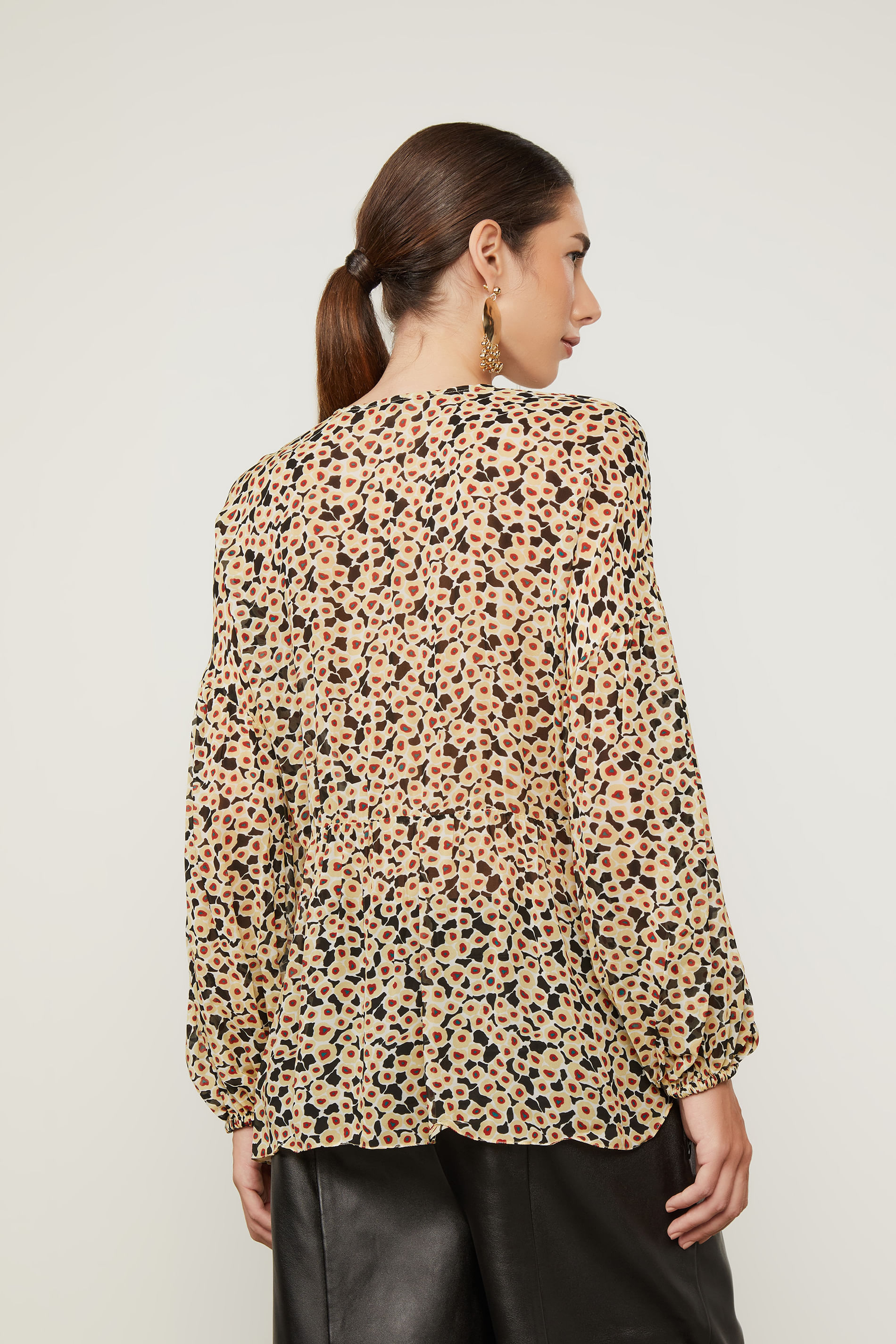 Bata De Georgette Leve Manga Longa Estampada