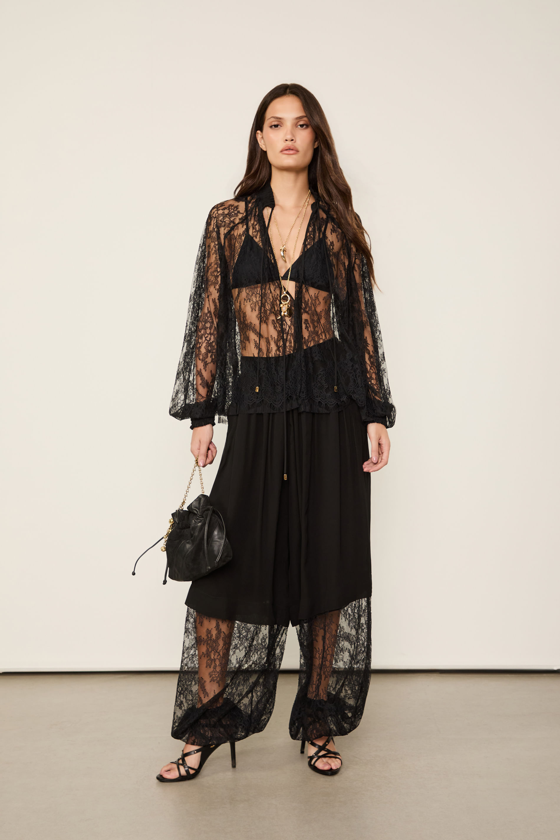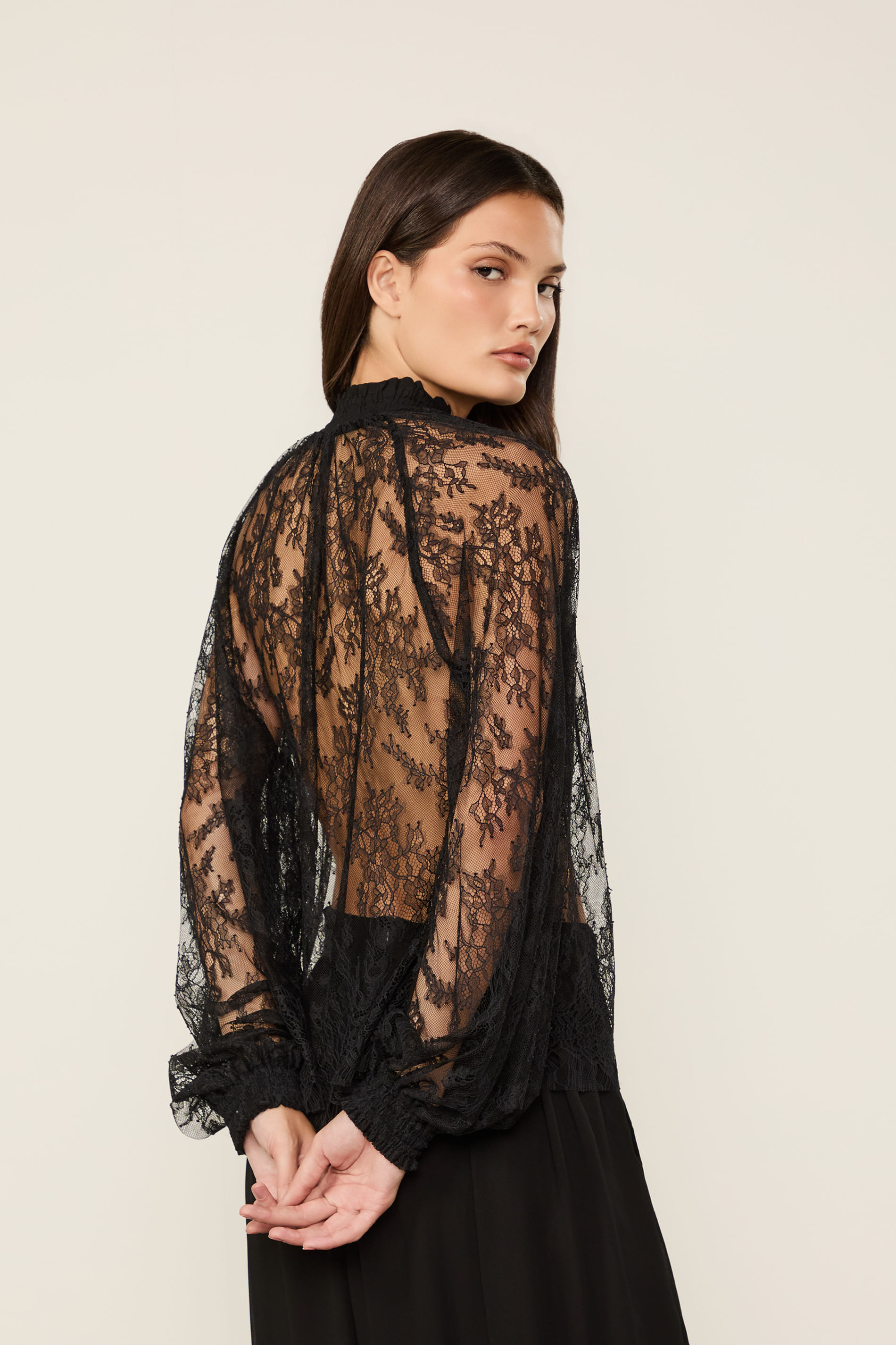 Bata De Renda Manga Longa Preta