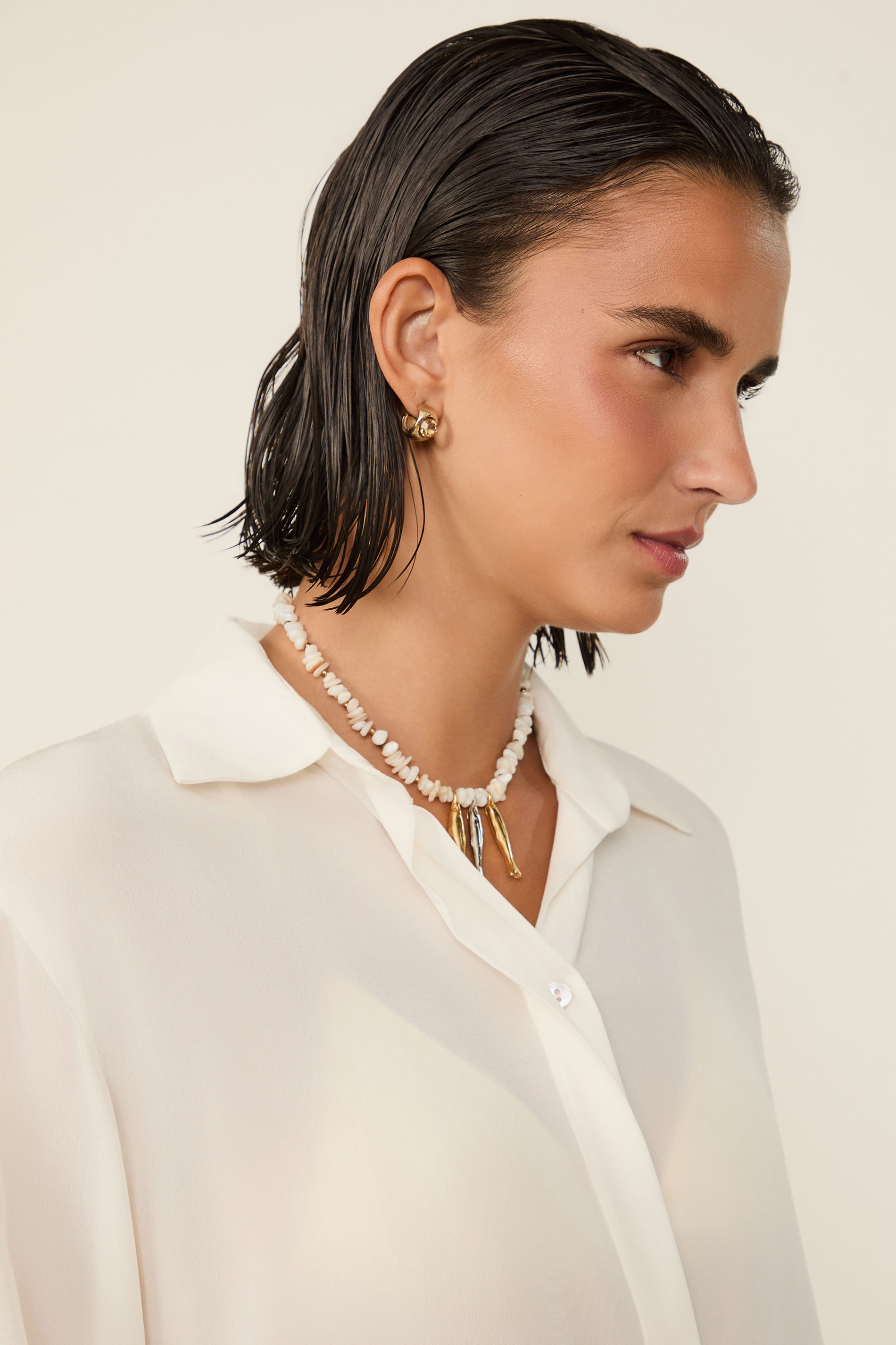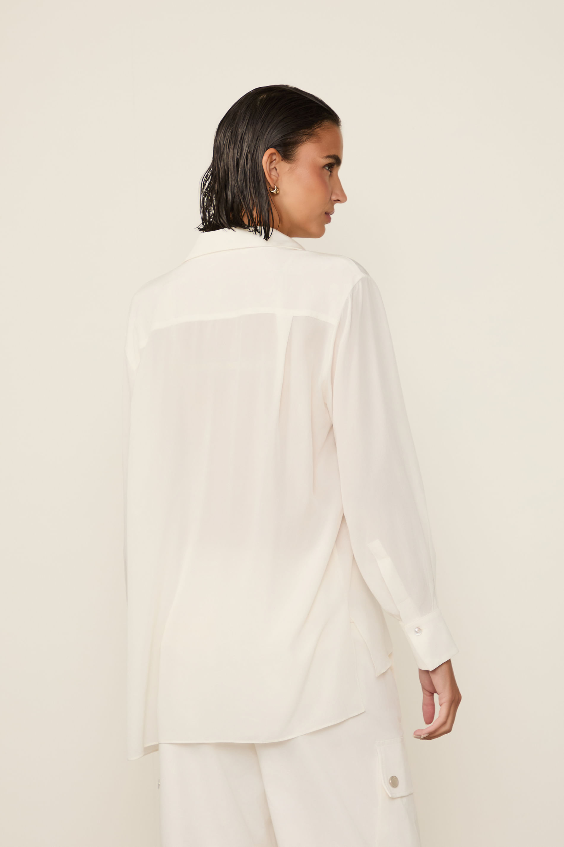 A Camisa de Seda possui mangas longas, fechamento por abotoamento, gola colarinho, comprimento clássico, mini fenda nas laterais e pala com prega nas costas. A novidade da nossa linha best-seller surge nos tons da estação.