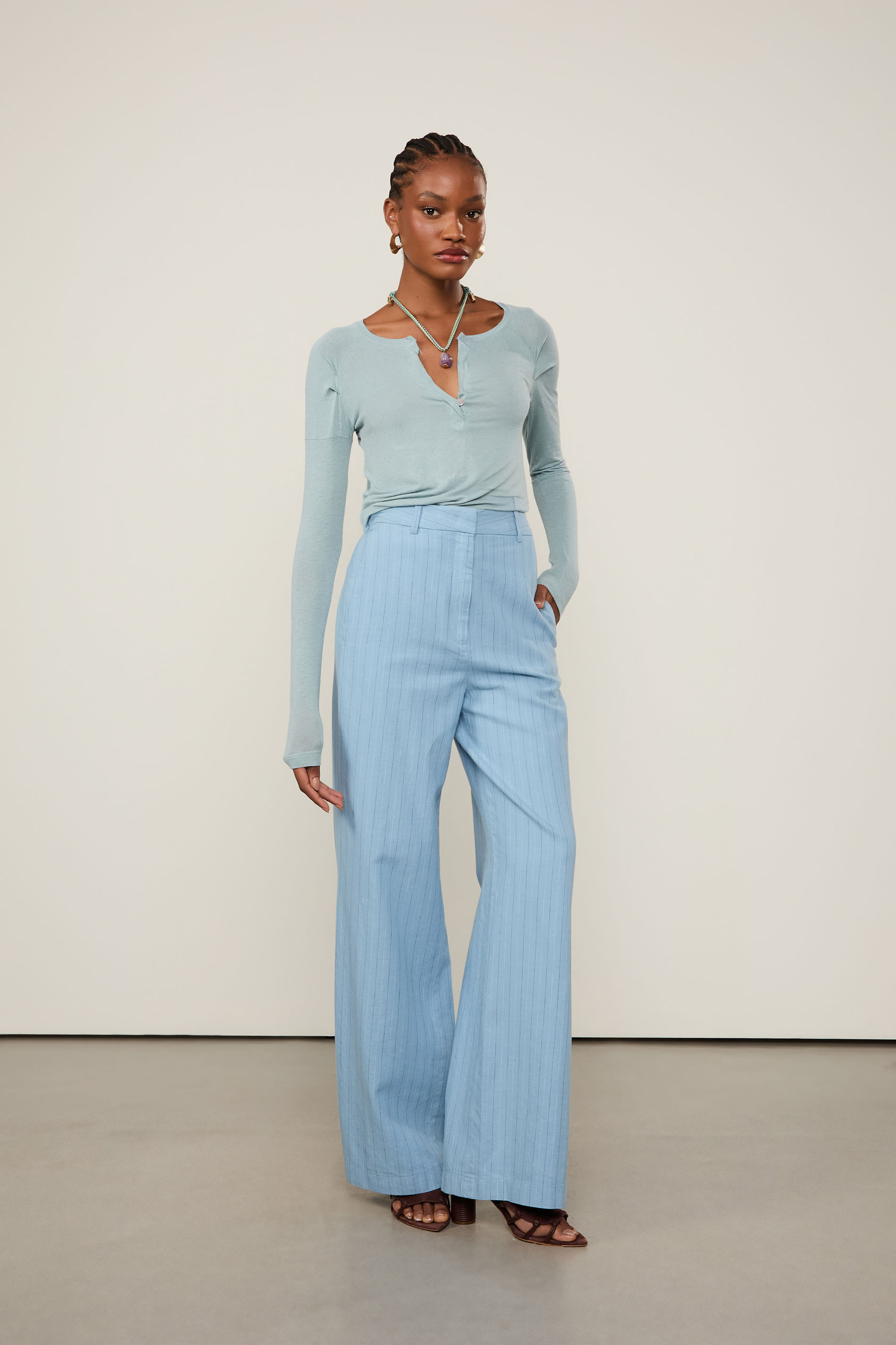 - Decote em V;