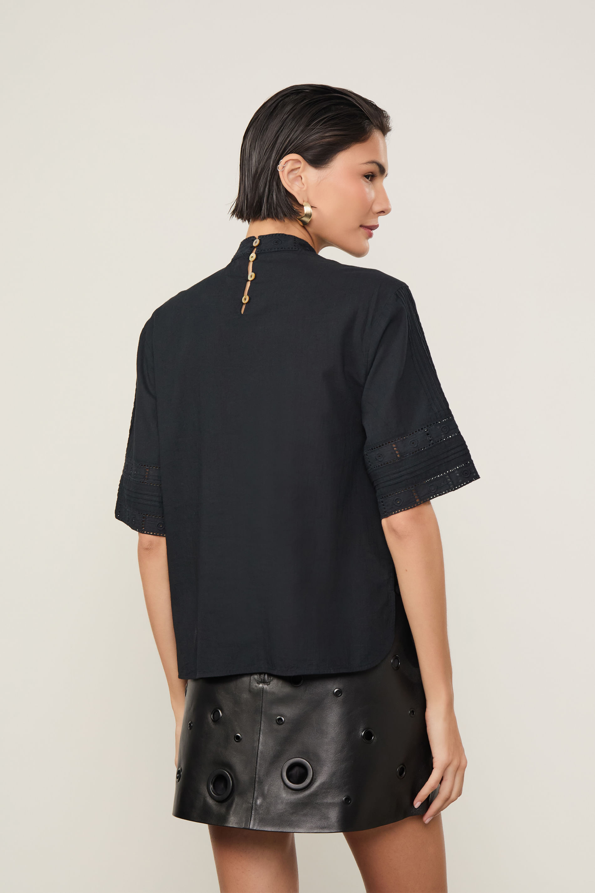 T-Shirt De Voil De Algodão Manga Curta Detalhe Rendas e Nervuras Off White