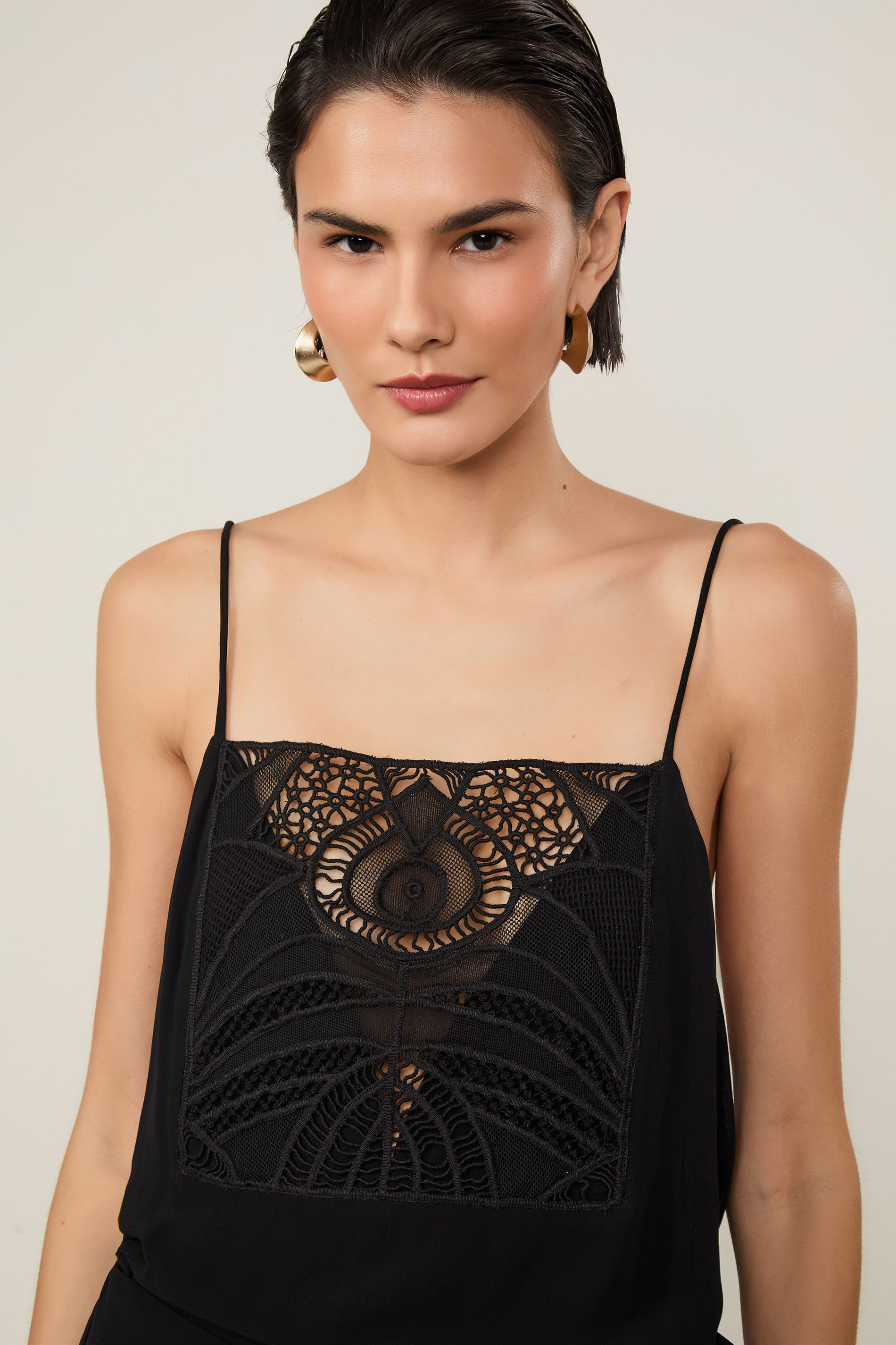 Vestido De Georgette Pesado Mini Pareô Com Pala De Renda